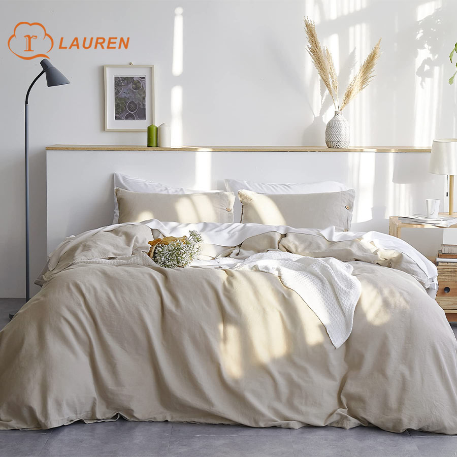 Sábana de lino lavado 100%, juegos de fundas de edredón de lino francés puro, juegos de cama de tamaño personalizado, venta al por mayor, proveedor de fábrica OEKO, estilo de EE. UU.